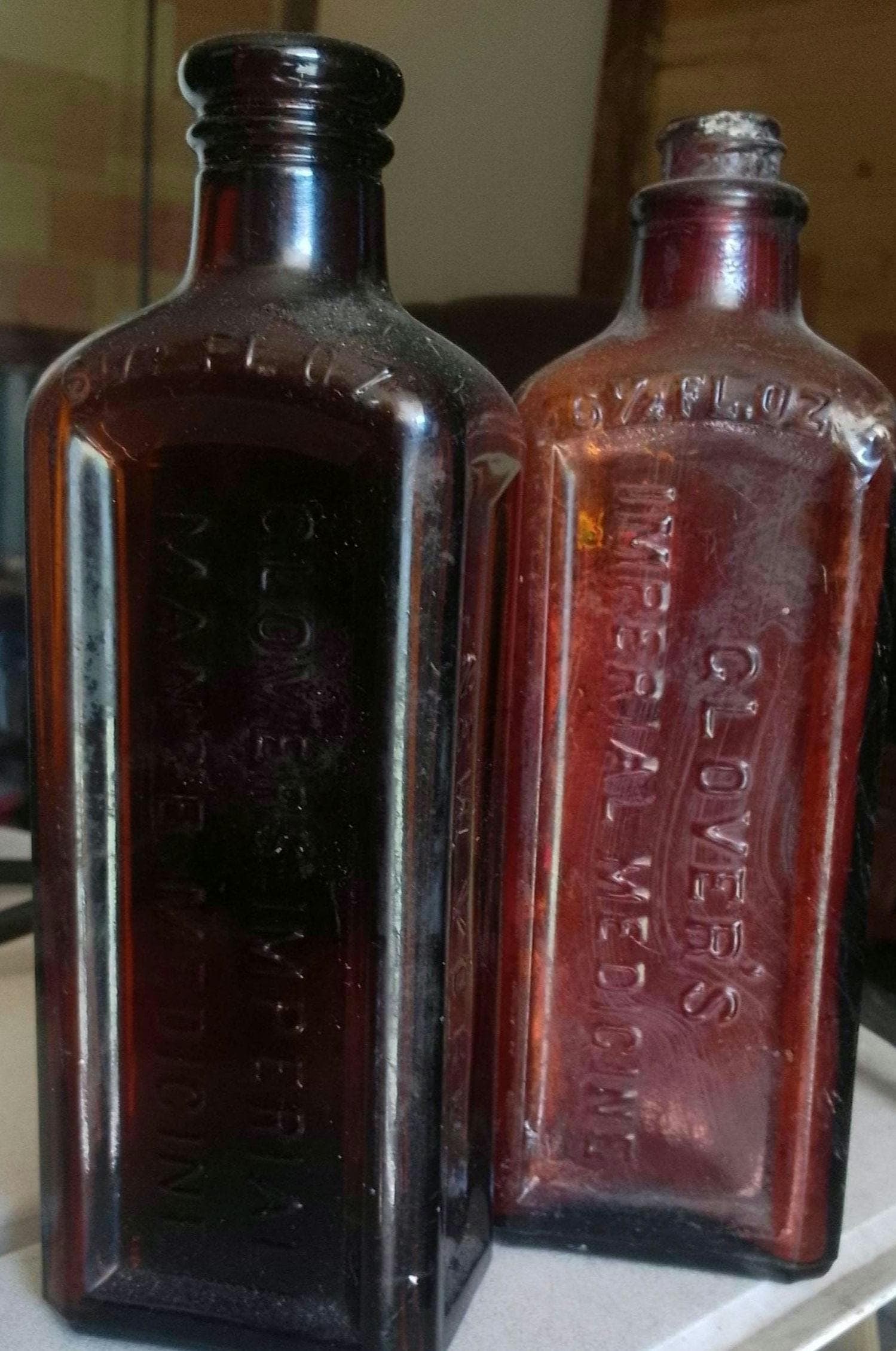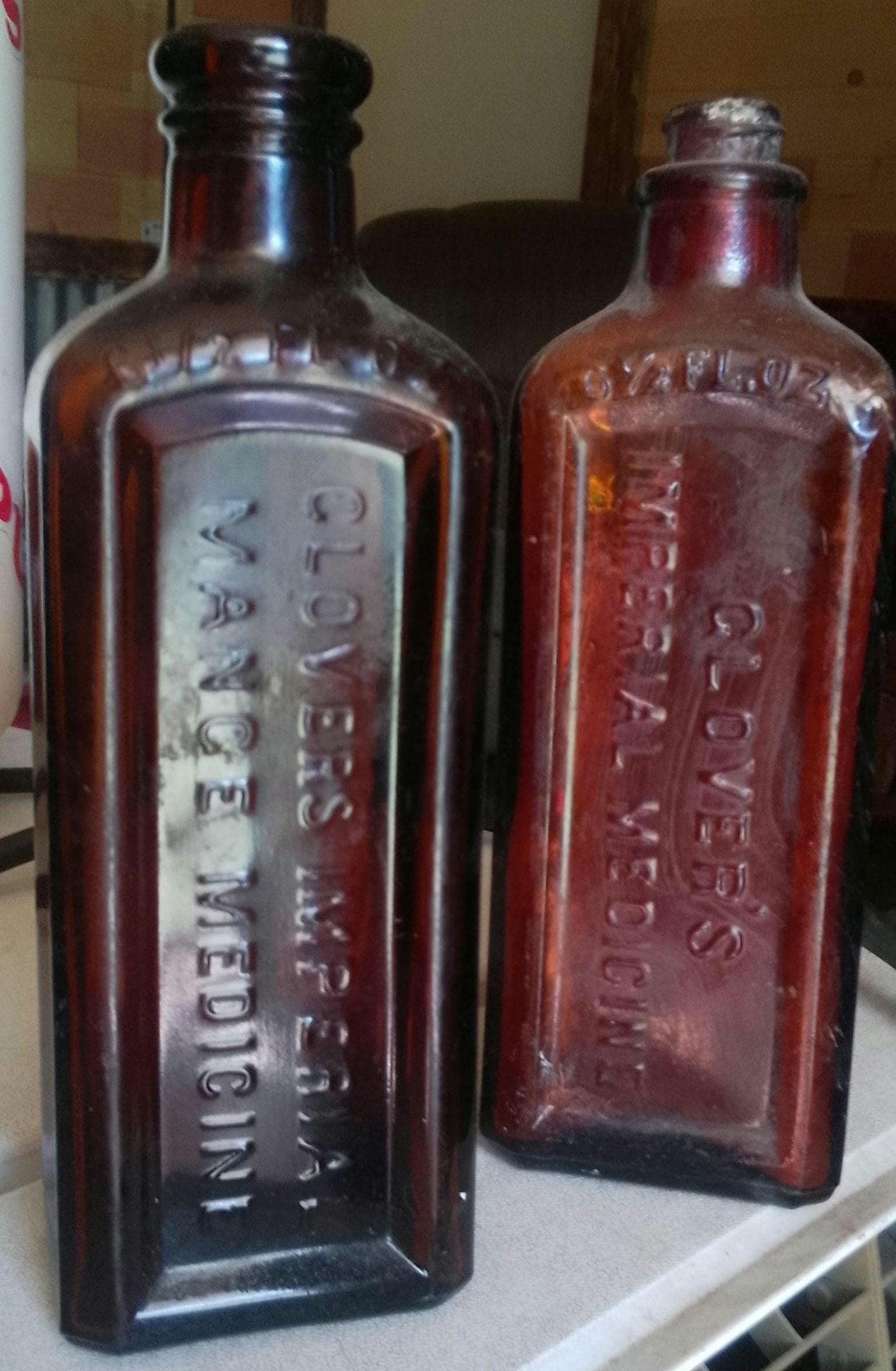 Antique clover Imperial Medicine Bottles Rustic Farmhouse Decor