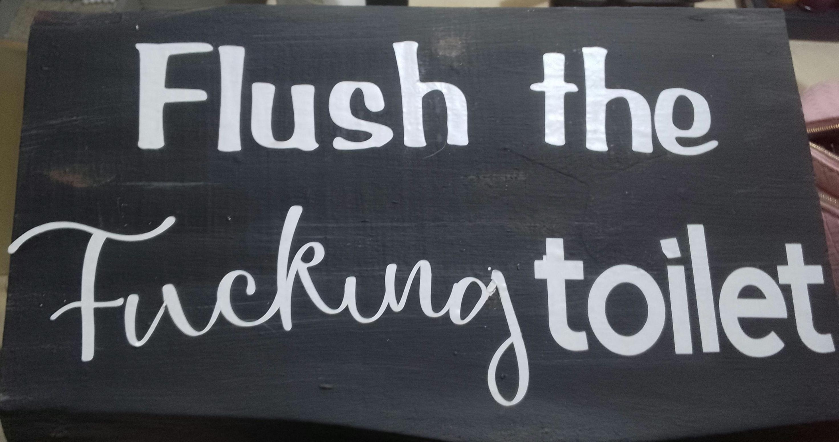 Rustic Wood Flush Toilet Sign: Funny Farmhouse Bathroom Decor
