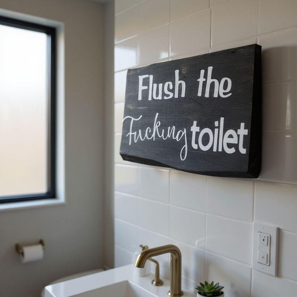 Add a touch of humor to your bathroom with this bold and rustic wood wall sign that reads “Flush the F**ing Toilet.”* Perfect for guest bathrooms, powder rooms, or your own home, this funny wall art combines farmhouse charm with modern sass. Made from quality wood and hand-painted lettering, it’s a unique reminder that adds both style and laughs.